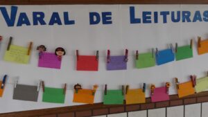 Crie um varal na sala de aula com livros pendurados por prendedores. Cada criança pode escolher um livro para ler durante a semana e depois indicar (ou não) para os colegas. Essa prática favorece a troca de experiências entre os alunos.